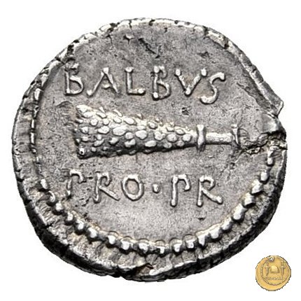 518/1 - denario C. Iulius Caesar Octavianus / L. Cornelius Balbus Dritto: C. CAESAR. III. VIR. R. P. C Testa di Ottaviano a destra. Verso: BALBVS - PRO. PR Clava. | |