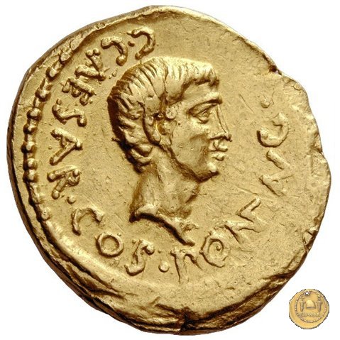 490/2 - aureo C. Iulius Caesar Octavianus Dritto: C. CAESAR. COS. PONT . AV G Testa di Ottaviano a destra. Verso: C. CAESAR. DICT. PERP. PONT . MA X Testa laureata di Giulio Cesare a destra. | |