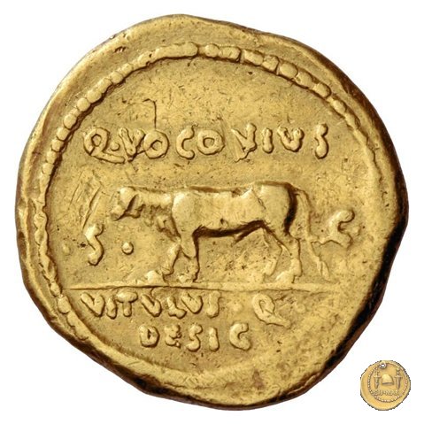 526/3 - aureo C. Iulius Caesar Octavianus / Q. Voconius Vitulus Dritto: DIVI. F Testa di Ottaviano a destra. Davanti il lituus. Verso: Q. VOCONIVS - VITVLVS. Q / DESIG Vitello a sinistra. Ai lati: S - C | |