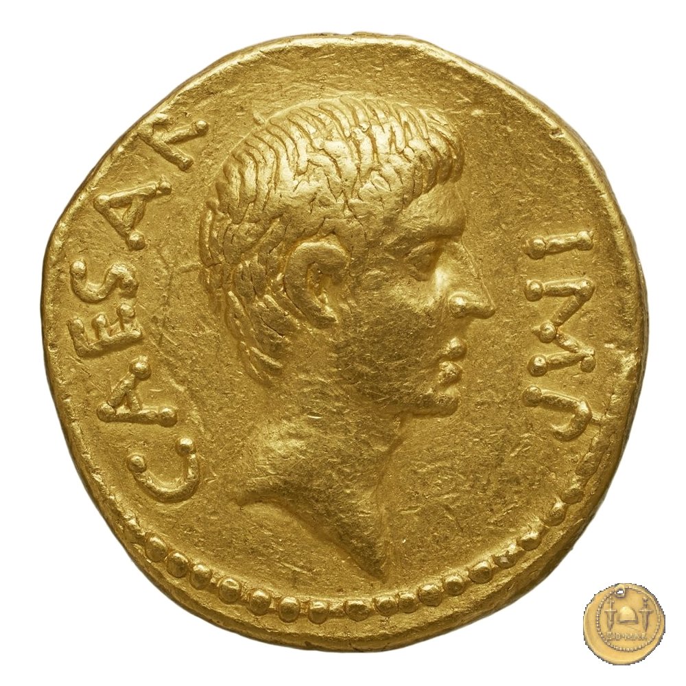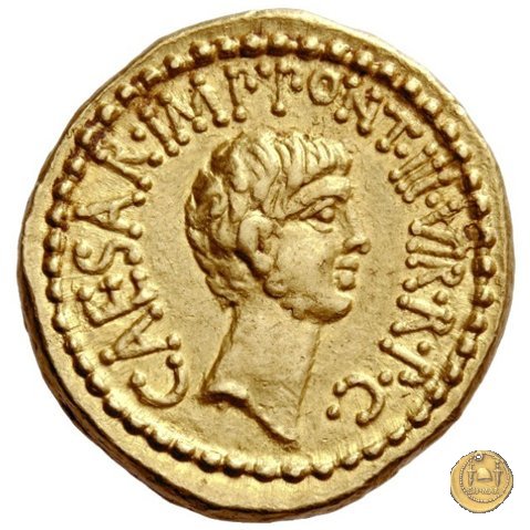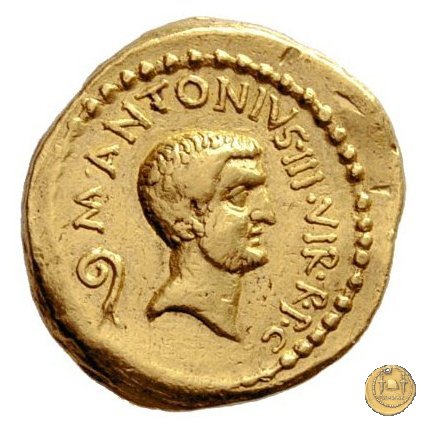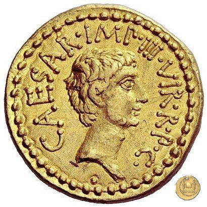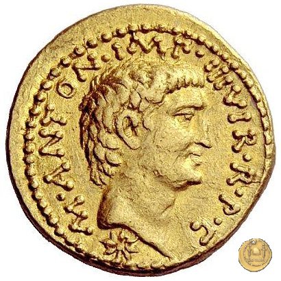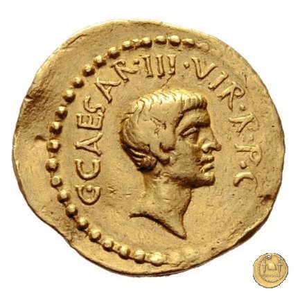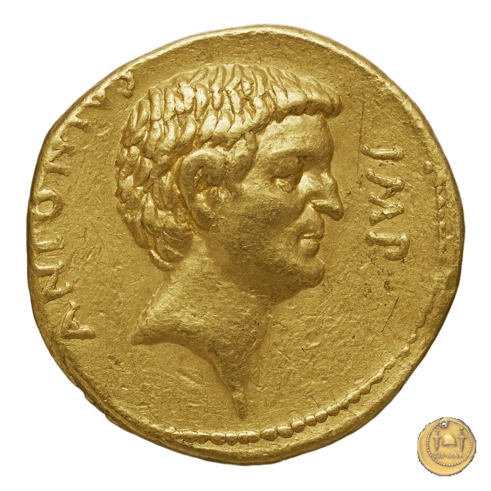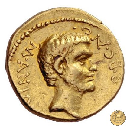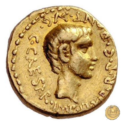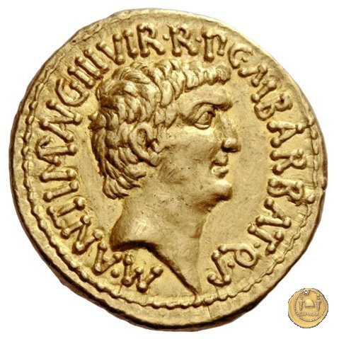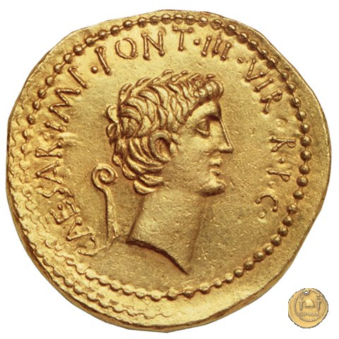 493/1 - aureo C. Iulius Caesar Octavianus / M. Antonius Obverse: C. CAESAR. IMP. III. VIR. R. P. C. PONT . AV (G) Testa di Ottaviano a destra. Reverse: M. ANTONIVS. IM(P). III. VIR. R. P. C. AV G Testa di Marc'Antonio a destra. | |