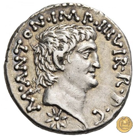 517/2 - denario M.Antonius / C.Iulius Caesar Octavianus / M.Barbatius Obverse: M. ANT. IMP . AV G. III. VIR. R. P. C. M. BARBAT. Q. P Testa di Marc'Antonio a destra. Reverse: CAESAR. IMP. PONT. III. VIR. R. P. C Testa di Ottaviano a destra. | |