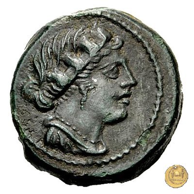 Obverse: Testa diademata femminile a destra; capelli raccolti in tre lunghe ciocche ricadenti sulle spalle. Dietro quattro globetti.