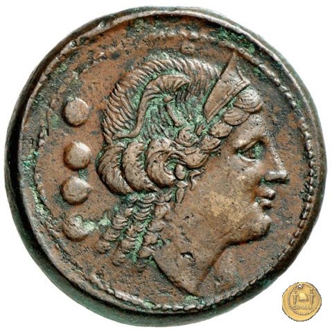 Obverse: Testa di Ercole a destra, con il capo avvolto nella pelle di cinghiale. Dietro tre globetti.