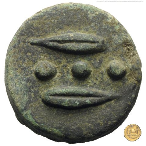 25/9 - Oncia Obverse: Astragalo visto dall'esterno. Reverse: Un globetto. A lato un falcetto. |