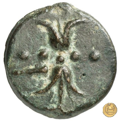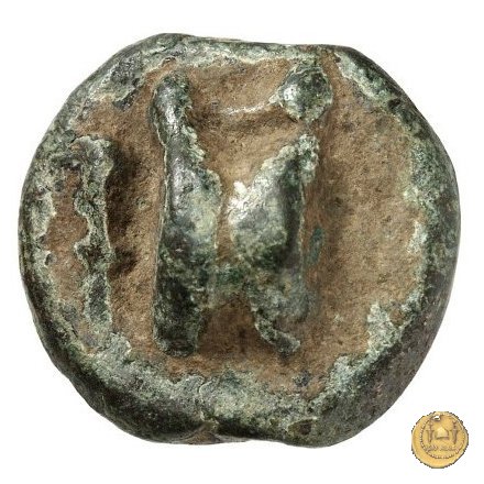 Obverse: Conchiglia, lato esterno. In basso una clava e due globetti.