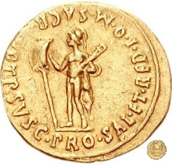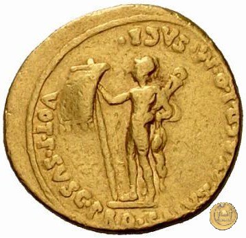 CLM60 Obverse: ![]() S P Q R IMP ![]() CAESARITesta di Augusto rivolta verso destra. Reverse: ↺ VOT P SVSC PRO SAL ET RED I O M SACR Marte, elmato e con mantello, in piedi verso sinistra e con la testa rivolta verso destra. Nella mano destra tiene un vessillo e nella sinistra un parazonium poggiato sulla spalla. | |