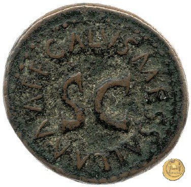 CLM542 Obverse: ↺ TI CAESAR AVGVST F IMPERAT V Testa di Tiberio, laureata, rivolta verso destra. Reverse: → ROM ET AVG (esergo) Fronte dell'altare di Lione, decorato con la corona civica in mezzo a due allori, tenuti da figure stilizzate; a sinistra e a destra dell'altare due colonne con su delle Vittorie con in mano delle ghirlande. | |
