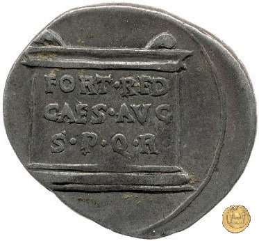 CLM200 Dritto: Testa di Augusto, laureata con foglie di quercia, rivolta verso sinistra. Verso: → FORTVN REDVC / CAESARI AVGVS / S P Q R Un altare iscritto. | |