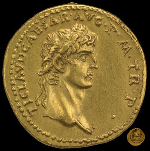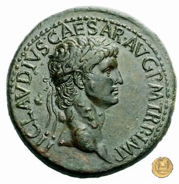 CLM49 Dritto: ↻ TI CLAVD CAESAR AVG P M TR P Busto di Claudio, laureato con foglie di quercia e rivolto verso destra. Verso: → EX S C / OB CIVES / SERVATOS La legenda su tre righe inserita dentro una ghirlanda con foglie di quercia. | |