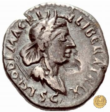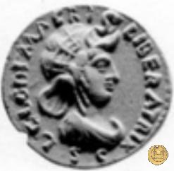 CLM5 Dritto: ![]() L CLODI MACR ![]() LIBERATRIX; → S CBusto dell'Africa rivolto verso destra, drappeggiato e con elmetto ad elefante. Verso: ↑ MACRIA → N - A ↓ LIB; → LEG - I Uno stendardo con in cima un'aquila che vola verso destra in mezzo ad altri due. | |