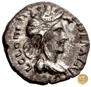 CLM1 Dritto: ![]() L CLODI MA ![]() CRI LIBERA; → S CBusto dell'Africa rivolto verso destra, drappeggiato e con elmetto ad elefante. Verso: ↑ LIB ↑ AVG; → LEG - III Uno stendardo con in cima un'aquila che vola verso destra in mezzo ad altri due. | |