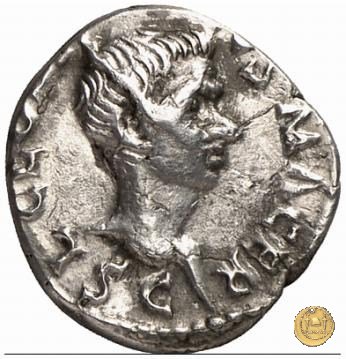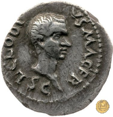 CLM18 Dritto: ![]() L - CLODI MACRI; → S - CBusto di una Vittoria rivolto verso destra con le ali rimpiegate. Verso: ↓ LIB ↑ AVG; → LEG - III Uno stendardo con in cima un'aquila che vola verso destra in mezzo ad altri due. | |