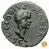 CLM35 Dritto: ↓ ROMA; → S - C Testa di Roma, elmata e rivolta verso destra. Verso: ![]() L CLODI ![]() MACRITrofeo con due scudi ovali piú rotondeggianti. | |
