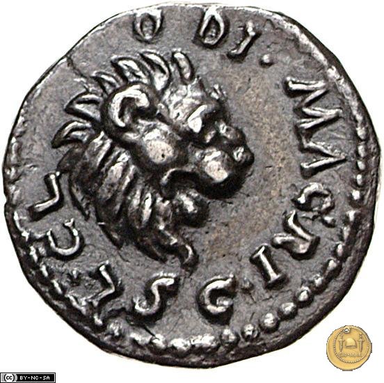 CLM12 Dritto: ![]() L CLODI ![]() MACRI; → ![]() CTesta di leone rivolta verso destra. Verso: ![]() L - I - B ![]() AVG; → LEG - III Uno stendardo con in cima un'aquila che vola verso destra in mezzo ad altri due. | |