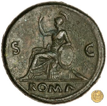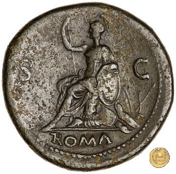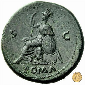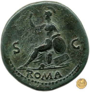 CLM250 Dritto: ↻ IMP SER GALBA AVG TR P Busto di Galba, laureato e drappeggiato, rivolto verso sinistra. Verso: → ROMA (esergo); S - C Roma, elmata, drappeggiata e seduta verso sinistra su di una corazza; nella mano destra una lancia, la sinistra, poggia su di uno scudo, che poggia a sua volta su di un elmo. | |