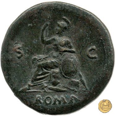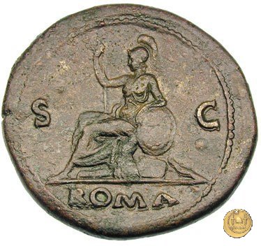 CLM246 Dritto: ↻ SER GALBA IMP - CAES AVG TR P Busto di Galba, laureato, rivolto verso destra. Verso: → ROMA (esergo); S - C Roma, elmata, drappeggiata e seduta verso sinistra su di una corazza; nella mano destra una lancia, la sinistra, poggia su di uno scudo. Sulla destra due gambali e un arco. | |