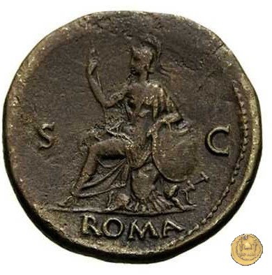 CLM613 Dritto: ↻ SER GALBA IMP - CAES AVG TR P Busto di Galba, laureato e drappeggiato, rivolto verso destra. Verso: → ROMA (esergo); S - C Roma, elmata, drappeggiata e seduta verso sinistra su di una corazza; nella mano destra una lancia, la sinistra, poggia su di uno scudo, che poggia a sua volta su di un elmo. | |