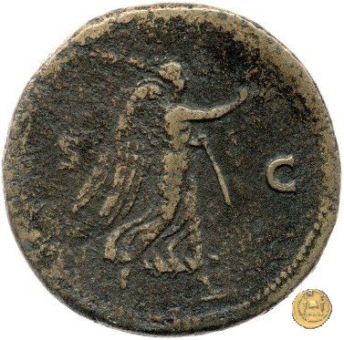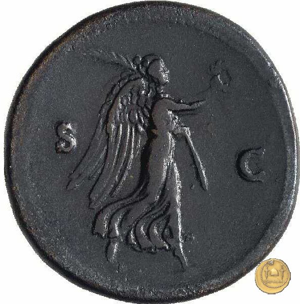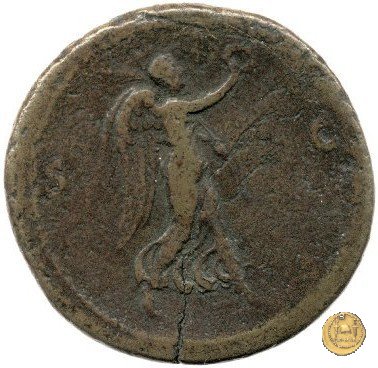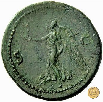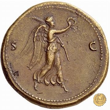 CLM581 Dritto: ↻ SER SVLPICIVS GALBA IMP AV; → S C Testa di Galba laureata rivolta verso destra. Globo all'apice del busto. Verso: ![]() VICTORIA ![]() P RUna Vittoria, con la testa rivolta verso sinistra, in piedi su di un globo. Nella mano destra tiene una ghirlanda; nella sinistra una palma. | |