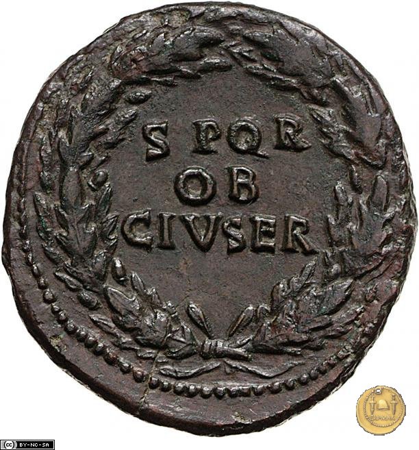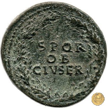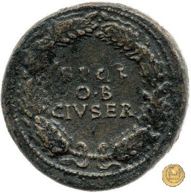 CLM276 Dritto: ↻ SER GALBA IMP - CAES AVG Busto di Galba, laureato con foglie di quercia e drappeggiato, rivolto verso destra. Verso: → S P Q R / OB / CIV SER La legenda su tre linee circondata da una ghirlanda in quercia. | |