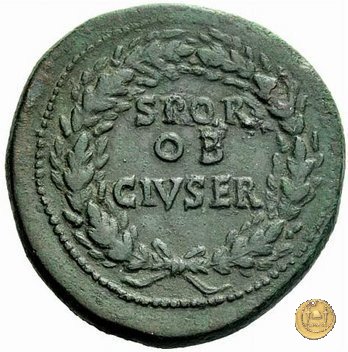 CLM268 Dritto: ↻ IMP SER GALBA AVG TR P Busto di Galba, drappeggiato, rivolto verso destra. Verso: → S P Q R / OB / CIV SER La legenda su tre linee circondata da una ghirlanda in quercia. | |