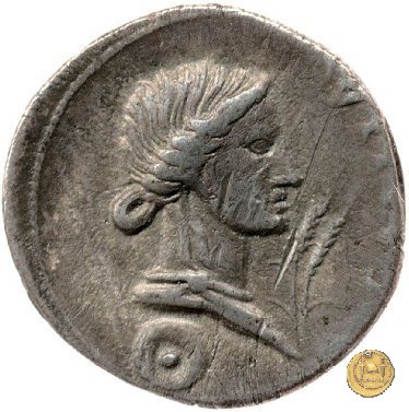 CLM169 Dritto: ![]() IMP SER ![]() GALBA AVGTesta di Galba, laureata, rivolta verso destra. Verso: ![]() HISPA ![]() NIALa Spagna, drappeggiata, che avanza verso destra; nella mano destra, papaveri e spighe di grano; nella sinistra, uno scudo circolare e due lance. | |