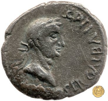 CLM114 Dritto: ↺ SER GALBA IMP CAESAR AVG TR P Testa di Galba, laureata, rivolta verso destra. Globo all'apice del busto. Verso: ![]() DIVA ![]() AVGVSTALivia, drappeggiata e in piedi rivolta verso sinistra. Nella mano destra una patera, nella sinistra un lungo scettro. | |