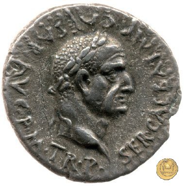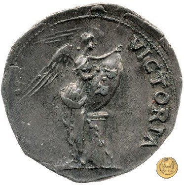 CLM135 Dritto: ![]() SER GALBA ![]() IMPTesta di Galba, laureata, rivolta verso destra. Globo all'apice del busto. Verso: ![]() VICTORIA; → P RUna Vittoria, con il busto nudo e rivolto verso destra, intenta a scrivere su di uno scudo posato su di una colonna decorata da ghirlande. | |
