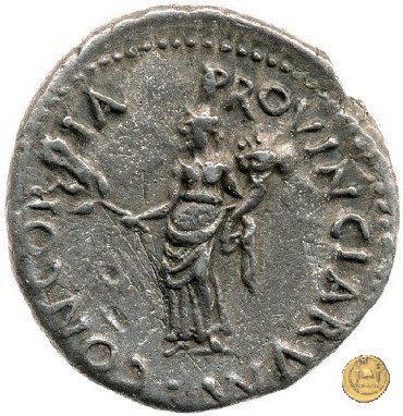 CLM103 Dritto: ![]() GALBA ![]() IMPERATORTesta di Galba, laureata, rivolta verso destra. Globo all'apice del busto. Verso: ![]() CONCORDIA ![]() PROVINCIARVMLa Concordia, drappeggiata e rivolta verso sinistra; nella mano destra un ramo di olivo, nella sinistra una cornucopia. | |