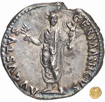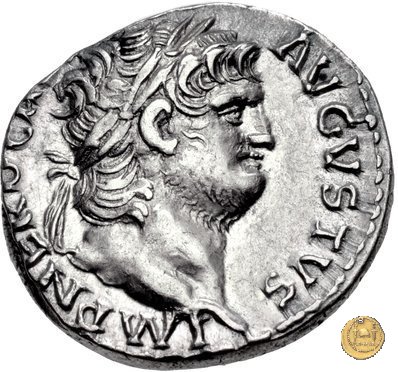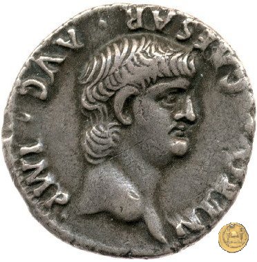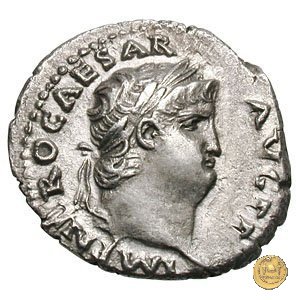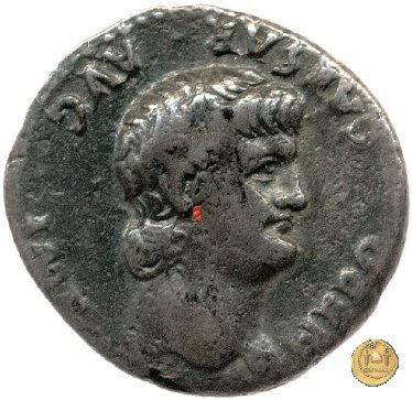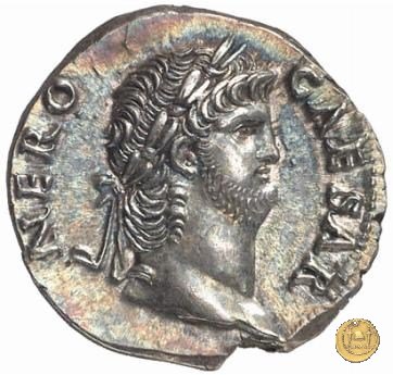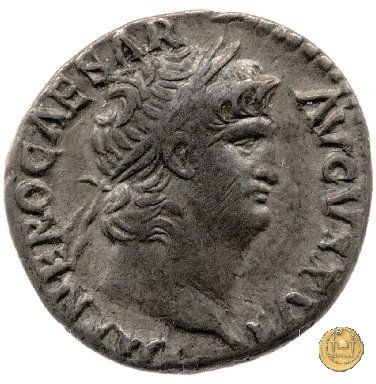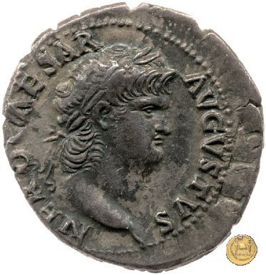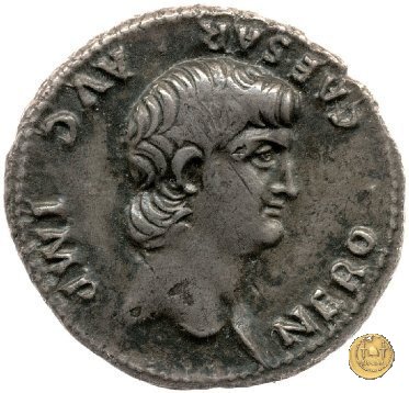CLM82 Obverse: ↻ NERO CLAVDIVS CAESAR AVG GERM P M TR P IMP P P Busto di Nerone, laureato e con l'egida, rivolto verso destra. Reverse: → DECVRSIO (esergo) Nerone, corazzato e con mantello sventolante, che galoppa verso destra su di un cavallo con in mano una lancia. Dietro di lui, un soldato che galoppa con un vessillo poggiato sulla spalla destra. | |