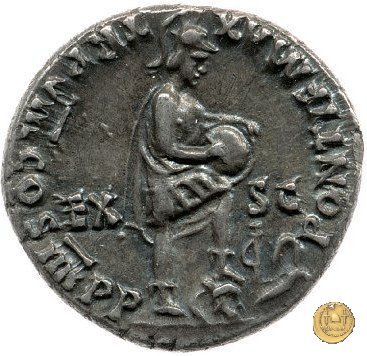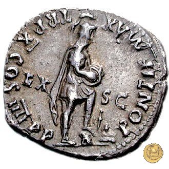 CLM50 Obverse: ↺ NERO CAESAR AVG IMP Testa di Nerone rivolta verso destra. Reverse: ![]() PONTIF MAX ![]() TR P VIII COS IIII P P; → EX - S CRoma, elmata in abbigliamento militare, rivolta verso destra; il piede sinistro su di un elmo. Iscrive su di uno scudo tenuto dalla mano sinistra sul ginocchio. | |