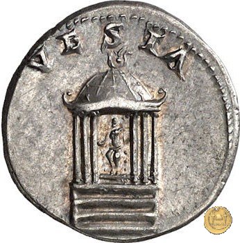 CLM63 Obverse: ![]() NERO CAESAR ![]() AVGVSTVSTesta di Nerone con barba e laureata, rivolta verso destra. Reverse: ![]() VESTATempio circolare con 6 colonne visibili e 4 scalini. Al suo interno la statua di Vesta, seduta e drappeggiata, con la testa rivolta verso sinistra; nelle sue mani una patera e un lungo scettro. | |