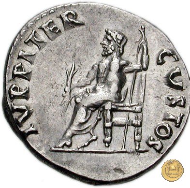 CLM64 Obverse: ![]() IMP NERO CAESAR ![]() AVGVSTVSTesta di Nerone con barba e laureata, rivolta verso destra. Reverse: ![]() IVPPITER ![]() CVSTOSGiove, nudo fino al bacino, seduto su di un trono verso sinistra; nella mano destra un fulmine, nella sinistra uno scettro. | |