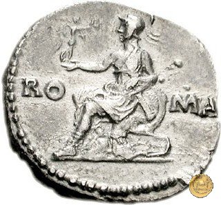 CLM69 Obverse: ![]() IMP NERO CAESAR ![]() AVG P PTesta di Nerone con barba e laureata, rivolta verso destra. Reverse: → RO - MA Roma, elmata e drappeggiata, seduta verso sinistra su di una corazza; nella mano destra una Vittoria, nella sinistra un parazonium; il piede destro è su un elmo. | |