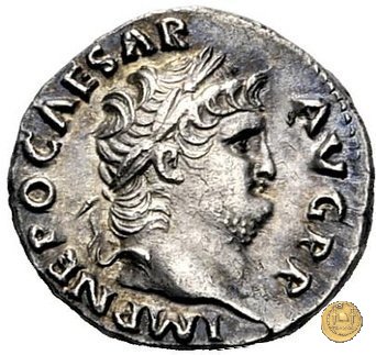 CLM72 Obverse: ↻ NERO CLAVD CAESAR AVG GERM P M TR P IMP Testa di Nerone laureata rivolta verso sinistra. Reverse: → ADLOCVT COH (esergo) Nerone, togato e rivolto verso sinistra, con un prefetto del pretorio, anch'esso togato, su di una piattaforma sulla destra; la mano destra è rivolta a 3 soldati, in piedi verso destra, disposti su una fila e dei quali i primi due, tengono due stendardi. Nello sfondo, una struttura a semiluna. | |