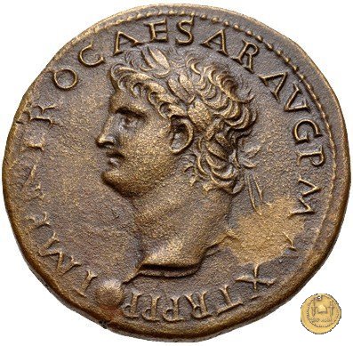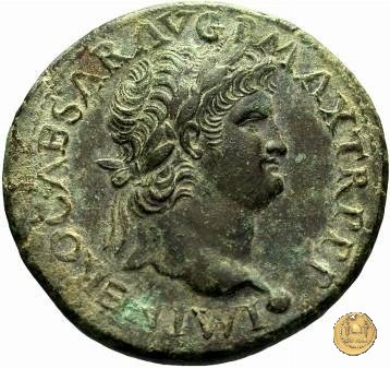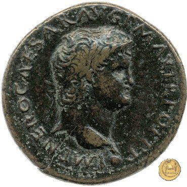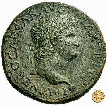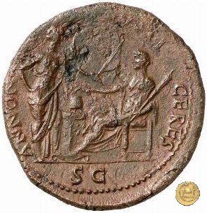 CLM252 Obverse: ↻ IMP NERO CAESAR AVG P MAX TR P P P Testa di Nerone laureata rivolta verso sinistra. Globo all'apice del busto. Reverse: ↻ ANNONA - AVGVSTI - CERES; → S C (esergo) Cerere, sulla destra, velata e drappeggiata, seduta verso sinistra con in mano spighe di grano e una torcia. Di fronte l'Annona, drappeggiata e in piedi verso destra, con una cornucopia; nel mezzo un modio su di un altare addobbato; nello sfondo la poppa di una nave. | |