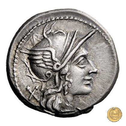 134/1 - denario L. Plautius Hypsaeus Dritto: Testa di Roma a destra, con elmo attico alato. Dietro: ![]() ![]() Verso: LPLH - ROMA I Dioscuri a cavallo verso destra. | |