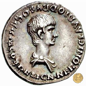 Britannico, in piedi e con la testa rivolta verso sinistra, in mezzo ad Ottavia, a sinistra e con la testa verso destra, che gli stringe una mano e Antonia, a destra e con la testa verso sinistra che regge una cornucopia.