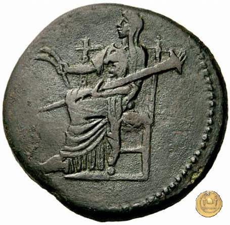 Cerere, velata e drappeggiata, in piedi e rivolta verso sinistra; nella mano destra due spighe di grano, nella sinistra una torcia.