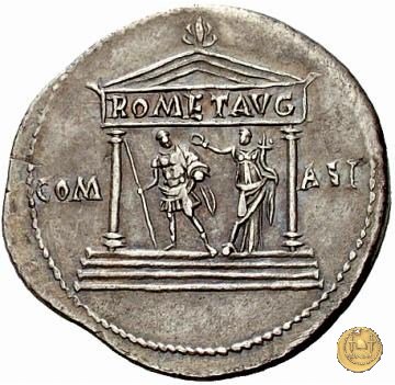 Un castro pretorio con all'interno un soldato con in mano una lancia rivolto verso sinistra; davanti al guerriero, un'aquila.