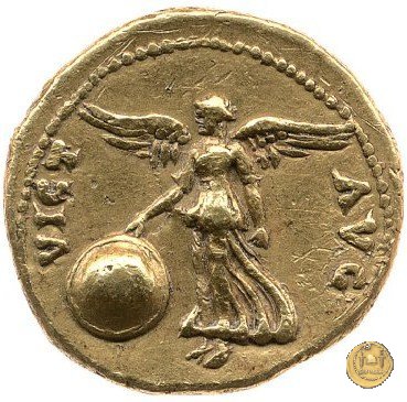 CLM34 Obverse: ↺ NERO CL DIVI F CAES AVG P M TR P II Testa di Nerone rivolta verso destra. Reverse: ![]() VICT ![]() AVGVittoria alata e rivolta verso sinistra, con la mano destra tiene uno scudo. | |