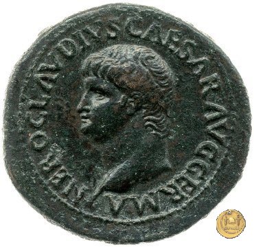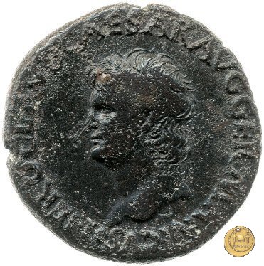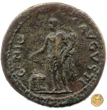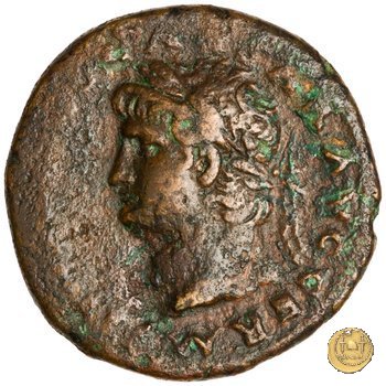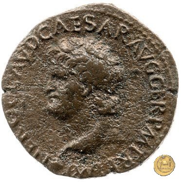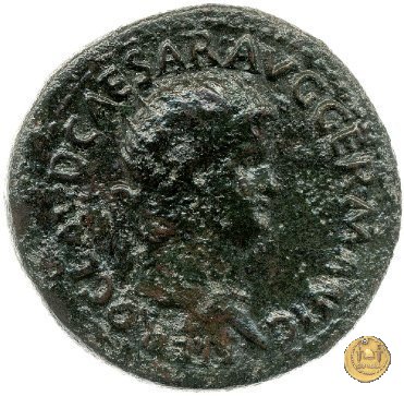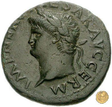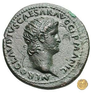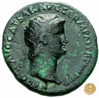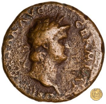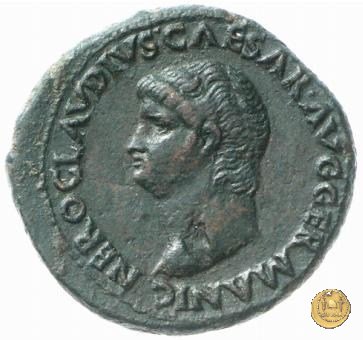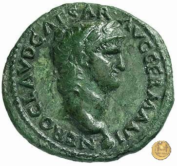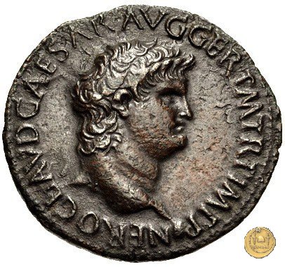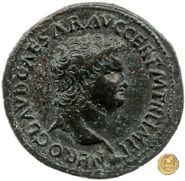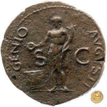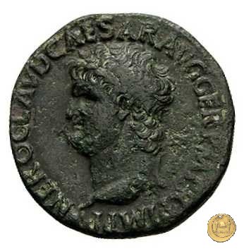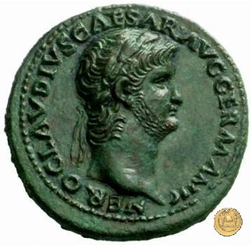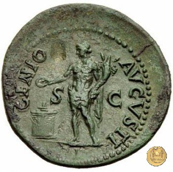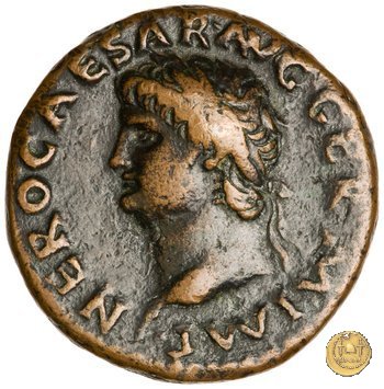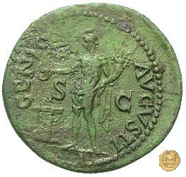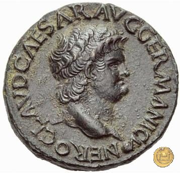 CLM445 Obverse: ↻ NERO CLAVD CAESAR - AVG GERMANI Testa di Nerone laureata rivolta verso destra. Globo all'apice del busto. Reverse: ![]() GENIO ![]() AVGVSTI; → S - C; I (esergo)Il Genio, drappeggiato e in piedi verso sinistra. In mano una patera, tenuta sopra un altare e una cornucopia. | |