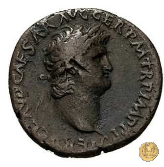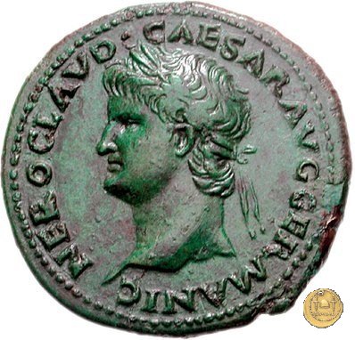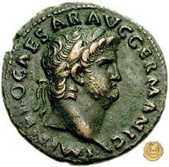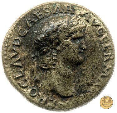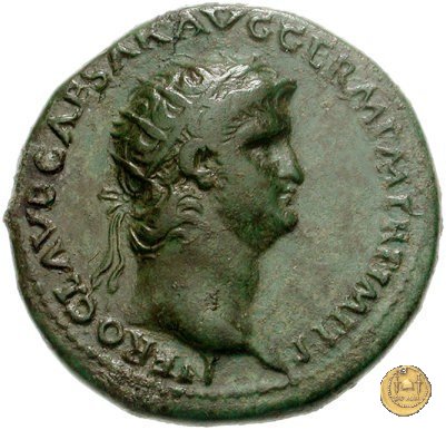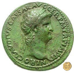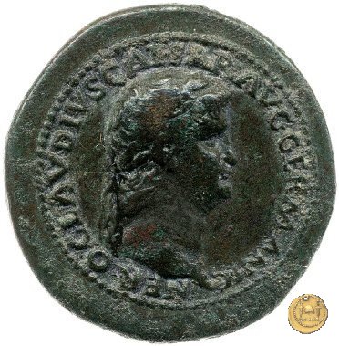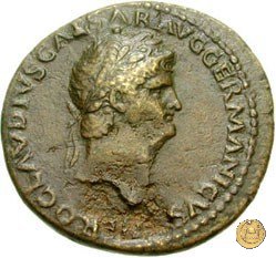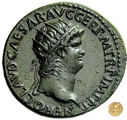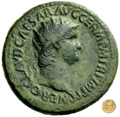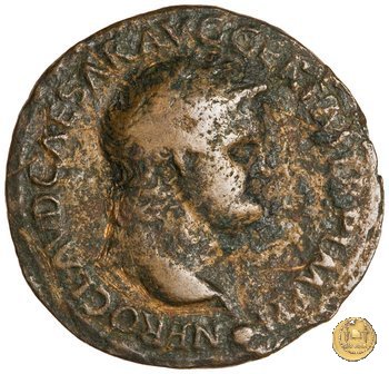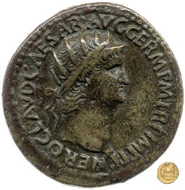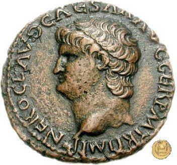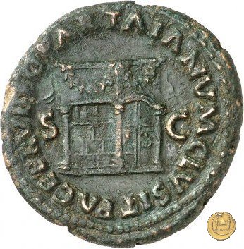 CLM421 Obverse: ↻ NERO CLAVD CAESAR AVG GER P M TR P IMP P P Testa di Nerone laureata rivolta verso destra. Reverse: ↻ PACE P R TERRA MARIQ PARTA IANVM CLVSIT; → S - C Prospetto frontale del tempio di Giano, con finestre sbarrate sulla destra e con porta a due ante chiusa, sulla sinistra. | |