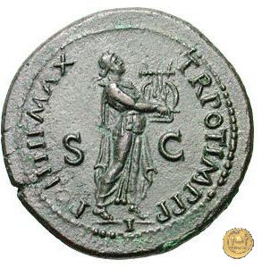 CLM444 Obverse: ↻ NERO CLAVD - CAESAR AVG GERMANIC Testa di Nerone laureata rivolta verso sinistra. Reverse: ![]() PONTIF MAX ![]() TR POT IMP P P; → S - C; I (esergo)Nerone, laureato, che cammina verso destra nelle vesti di Apollo Citharoedus mentre suona una lira. | |