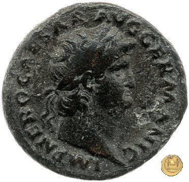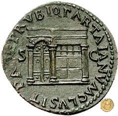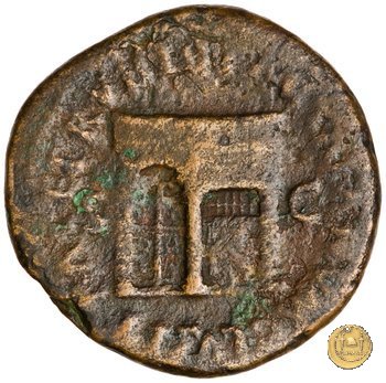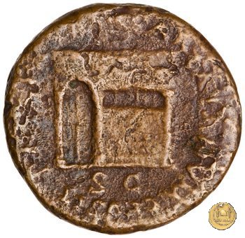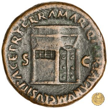 CLM477 Obverse: ↻ NERO CLAVD CAESAR AVG GER P M TR P IMP P Testa di Nerone rivolta verso destra. Globo all'apice del busto. Reverse: ↻ PACE P R TERRA MARIQ PARTA IANVM CLVSIT; → S - C Prospetto frontale del tempio di Giano, con finestre sbarrate sulla sinistra e con porta a due ante chiusa, sulla destra. | |