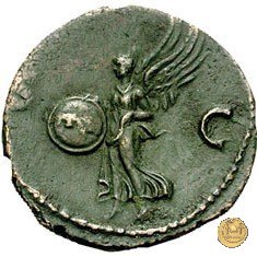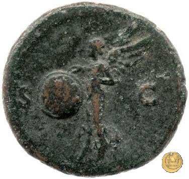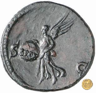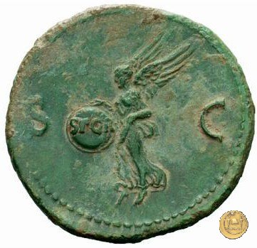CLM457 Obverse: ↻ NERO CLAVD CAESAR AVG GERMANICVS Testa di Nerone rivolta verso destra. Globo all'apice del busto. Reverse: → S - C; S P Q R Una Vittoria che vola verso sinistra; con entrambe le mani regge uno scudo inscritto. | |