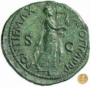 CLM443 Obverse: ↻ NERO CLAVD CAESAR - AVG GERMANI Testa di Nerone laureata rivolta verso destra. Globo all'apice del busto. Reverse: ![]() PONTIF MAX ![]() TR POT IMP P P; → S - C; I (esergo)Nerone, laureato, che cammina verso destra nelle vesti di Apollo Citharoedus mentre suona una lira. | |