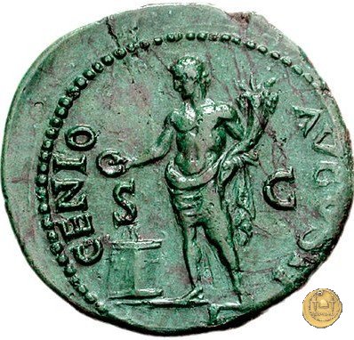 CLM415 Obverse: ↻ NERO CLAVDIVS CAESAR AVG GERMANIC Testa di Nerone laureata rivolta verso destra. Reverse: ![]() GENIO ![]() AVGVSTI; → S - C; I (esergo)Il Genio, drappeggiato e in piedi verso sinistra. In mano una patera, tenuta sopra un altare e una cornucopia. | |