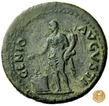 CLM454 Obverse: ↻ NERO CLAVD CAESAR AVG GERMANICVS Testa di Nerone rivolta verso destra. Globo all'apice del busto. Reverse: ![]() GENIO ![]() AVGVSTI; → S - CIl Genio, drappeggiato e in piedi verso sinistra. In mano una patera, tenuta sopra un altare e una cornucopia. | |