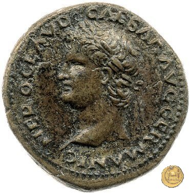 CLM419 Obverse: ↻ NERO CLAVD CAESAR AVG GER P M TR P IMP P P Testa di Nerone laureata rivolta verso destra. Reverse: ↻ PACE P R TERRA MARIQ PARTA IANVM CLVSIT; → S - C Prospetto frontale del tempio di Giano, con finestre sbarrate sulla sinistra e con porta a due ante chiusa, sulla destra. | |