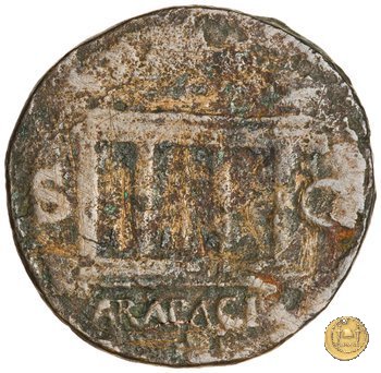 CLM469 Obverse: ↻ NERO CLAVD CAESAR AVG GER P M TR P IMP P P Testa di Nerone rivolta verso sinistra. Globo all'apice del busto. Reverse: → ARA PACIS (esergo); S - C Altare (ara pacis), ornato e decorato; una porta chiusa, a due ante, al centro. | |